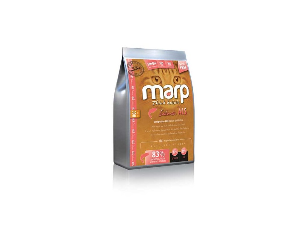 Čerstvé maso z lososa 31%, Sušené maso z lososa 22%, Sladké brambory, Brambory, Lososový olej 9% (konzervován směsí tokoferolů a rozmarýnu), Hrachová bílkovina, Hrách, Vývar z lososa 2%, Pivovatské kvasnice , Minerály a vitaminy, Fruktooligosacharidy (1200mg/kg), Rajčata, Česnek, Mořská řasa, Sušené brusinky, Šípek, Anýz a pískavice řecké seno, Máta, Petržel.