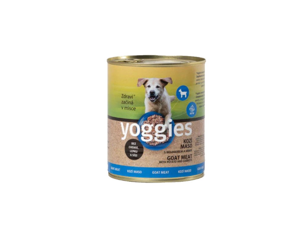 Yoggies kozí konzerva s bramborem a mrkví 800g.