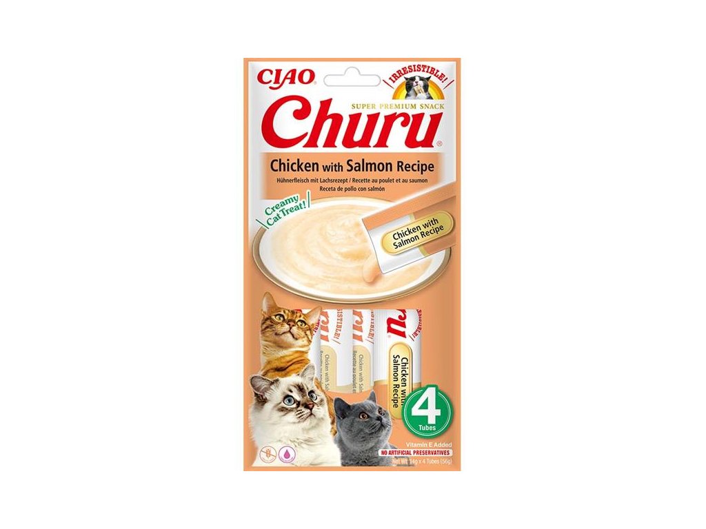 Inaba Churu cat snack kuře s příchutí lososa 4x 14g