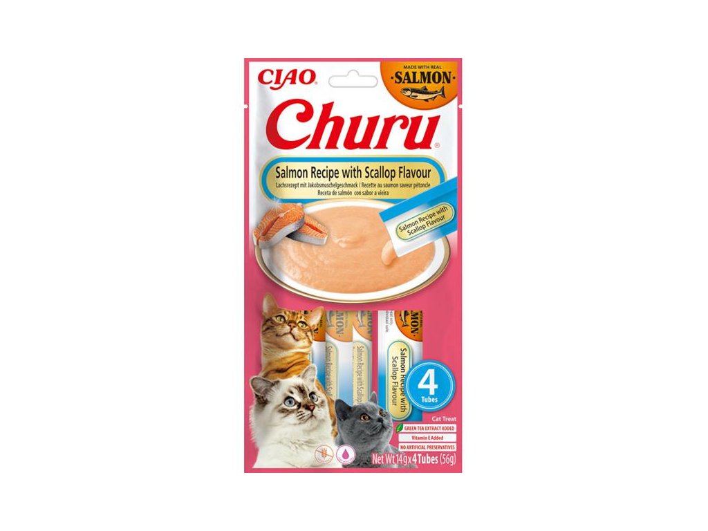 Inaba Churu cat snack losos & hřebenatka 4x 14g
