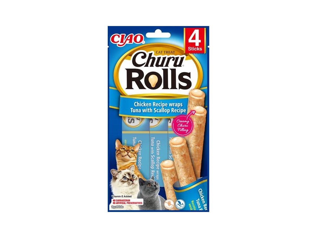Inaba Churu Rolls cat snack kuře, tuňák a hřebenatka 4x10 g