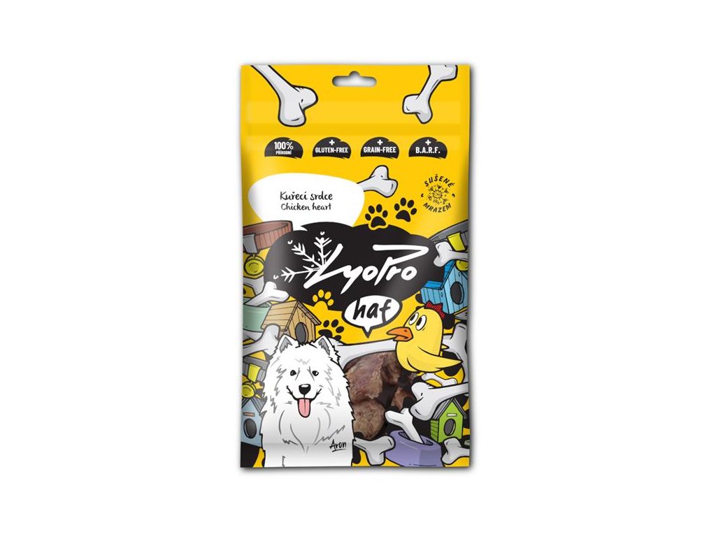 Při lyofilizaci neprochází maso vysokými teplotami, a proto si uchová maximum vitamínů, minerálů a nutričně hodnotných látek. Jde o ideální volbu pro BARF (krmení syrovou stravou), psí alergiky a celiaky. Další výhodou sušení mrazem je dlouhá trvanlivost. Vyrábějí se pouze z jediné suroviny – kuřecích srdíček, která jsou bohatá na železo, zinek a vitamíny skupiny B napomáhající energetickému metabolismu. Jde tak o zdravou, lehkou a chutnou odměnu.